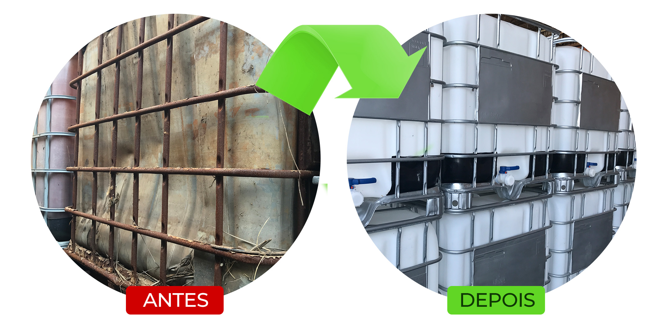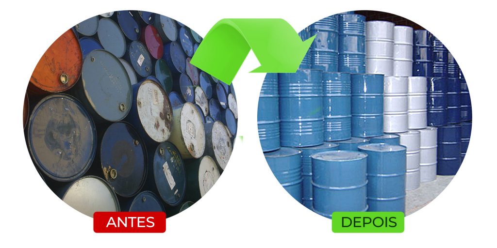 Recuperação completa com retirada de resíduos, higienização e preparação para reutilização.